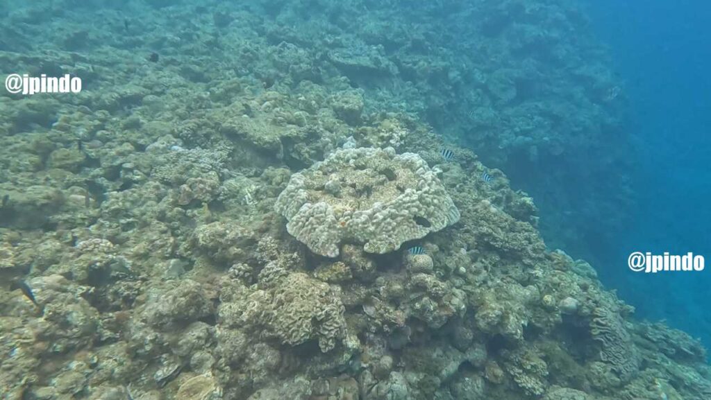 駐車場から海はすぐそこです。写真の少し奥の方に、展望所があるのがわかるでしょうか?今回はそこまでは行きませんでしたが、綺麗な海を見るのであれば、展望所に上がると美しい青色の海が楽しめます。