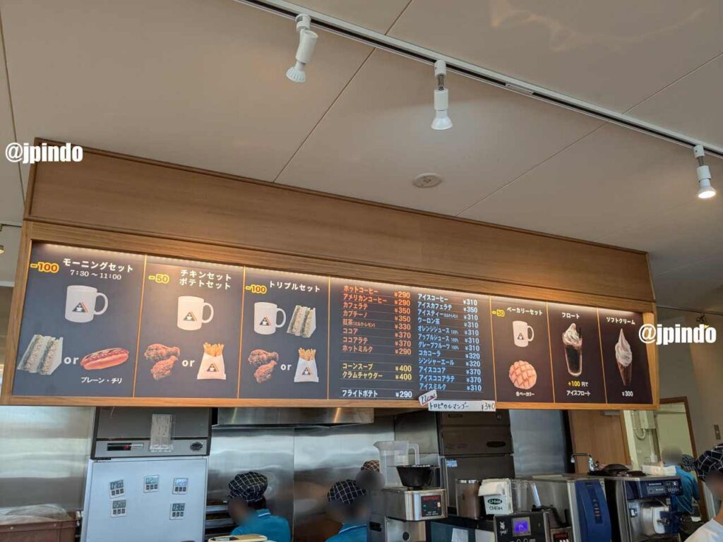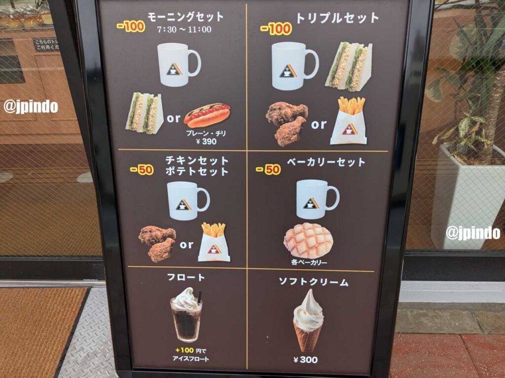 お店の前にはメニューがあります。朝食を食べる場合には、7時30分から11時までの間にモーニングセットがやっていてお得です。
