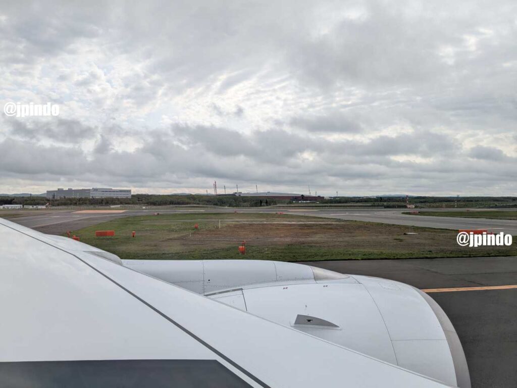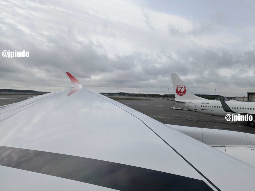 A-350のウイング。JALならではの、赤いグラデーションカラーが綺麗です。