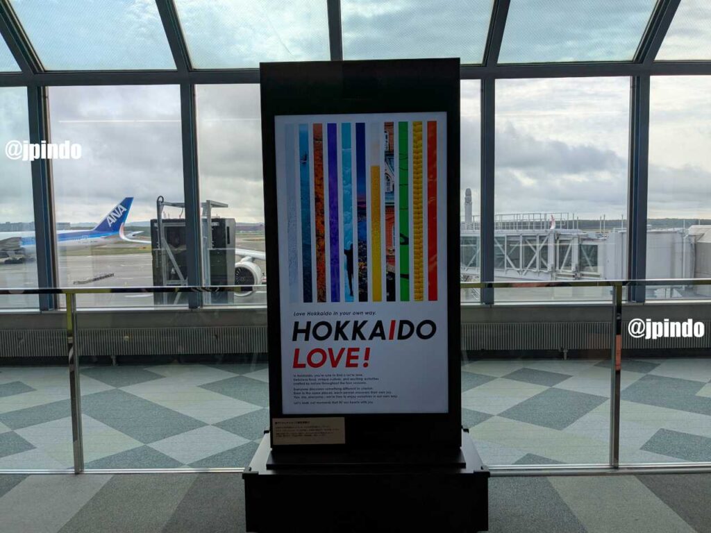 それでは、搭乗口へ向かうとします。「HOKKAIDOLOVE!」のディスプレイが綺麗でした。