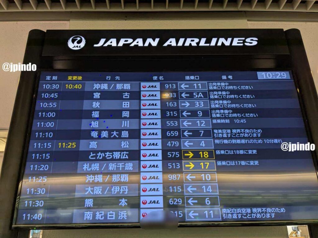 羽田空港に到着してひとまず電光掲示板を確認。というのも、この日の奄美空港は視界不良のため引き返す可能性があるということだったので、どのような状況になっているか確認です。