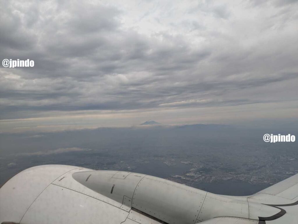 羽田空港の便に乗ると、富士山が見えるのが気に入っています。この日は山頂の方に少し雪が積もっていて、綺麗な富士山の景色を見ることができました。
