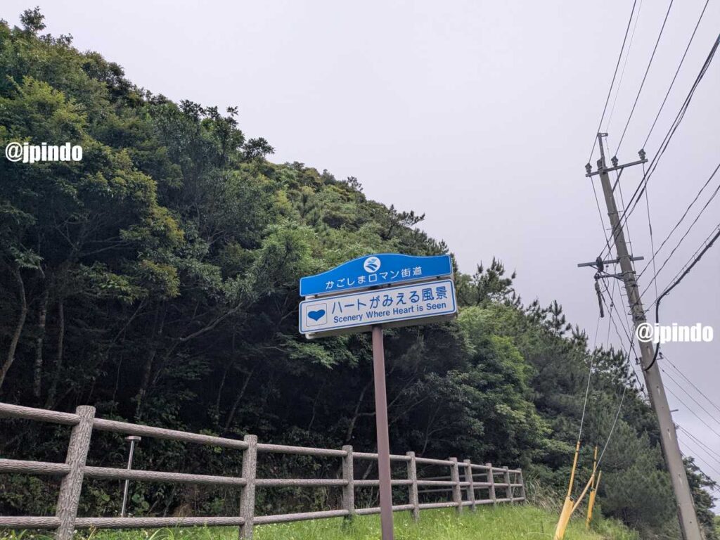 県道626号線を走っていると、「かごしまロマン街道」の可愛らしい看板が見えてきます。(付近まで来ると、ハートが見える風景の看板が分かりやすくあります。)