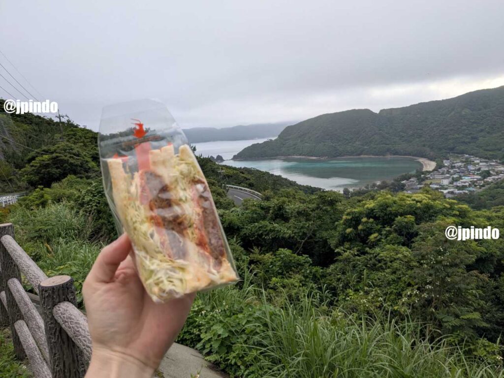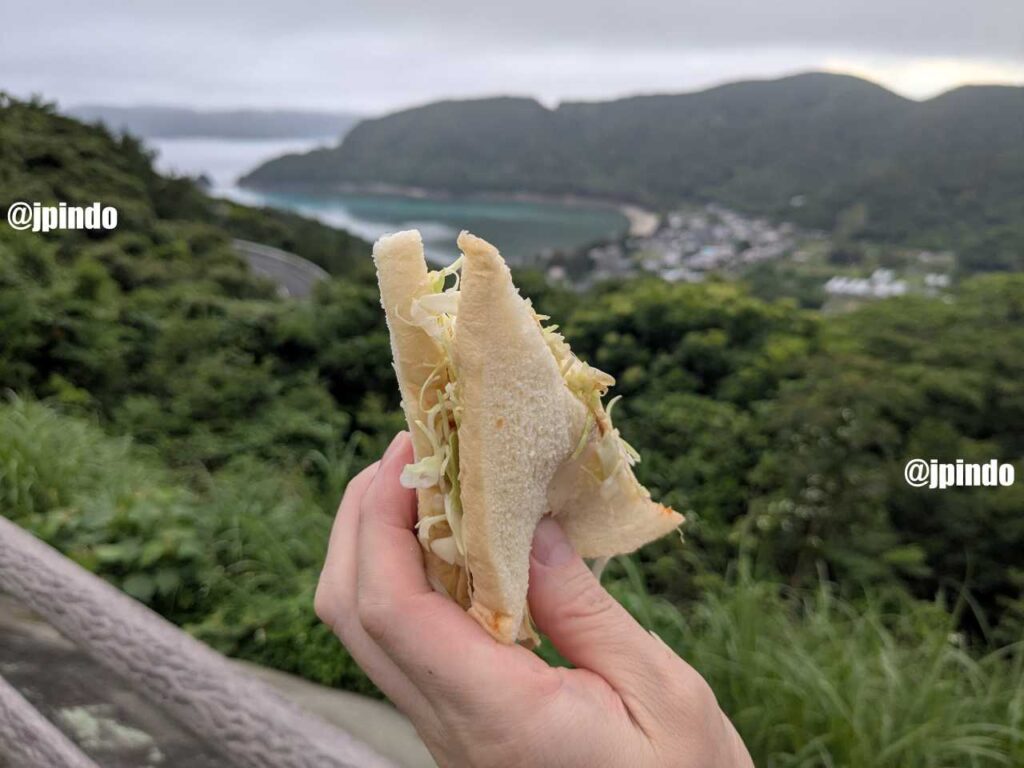 この日は、眼下に見える美しい嘉鉄ブルーの海でシュノーケリングをした後でした。ちょうどお腹が空いた頃で、美しい景色と美味しいサンドイッチを食べて最高の気分です。