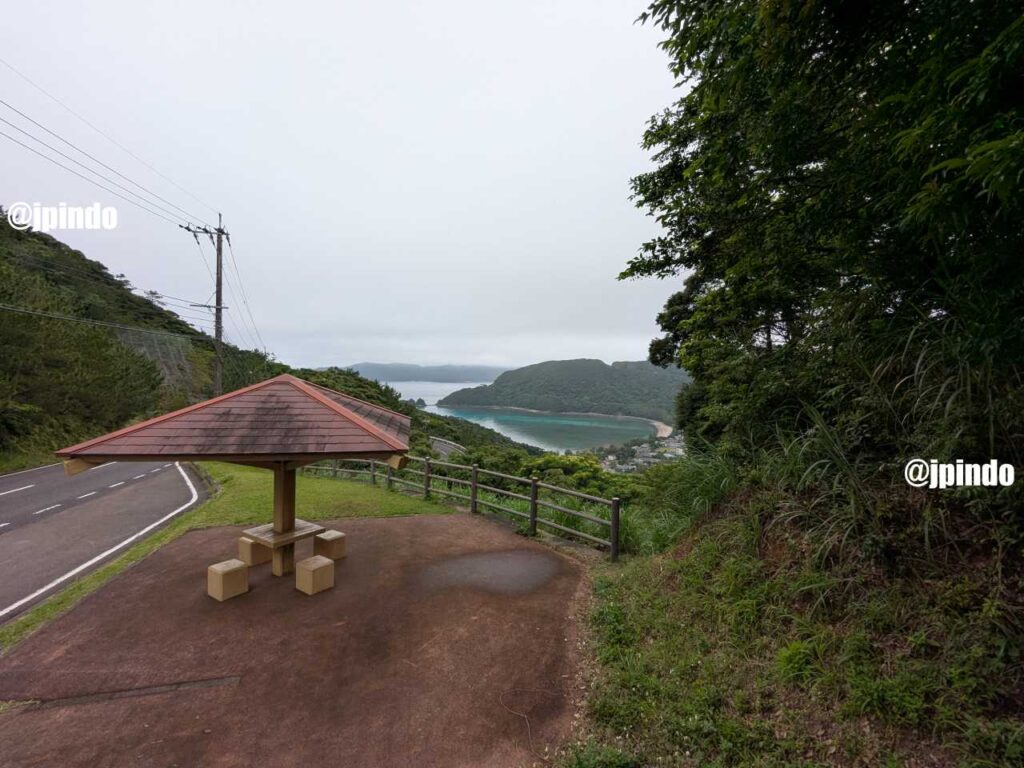 ここは嘉鉄湾を一望できるポイントで、リアス式海岸特有の入り組んだ地形が、ある角度から見ると「きれいなハート型」に見えるんです。