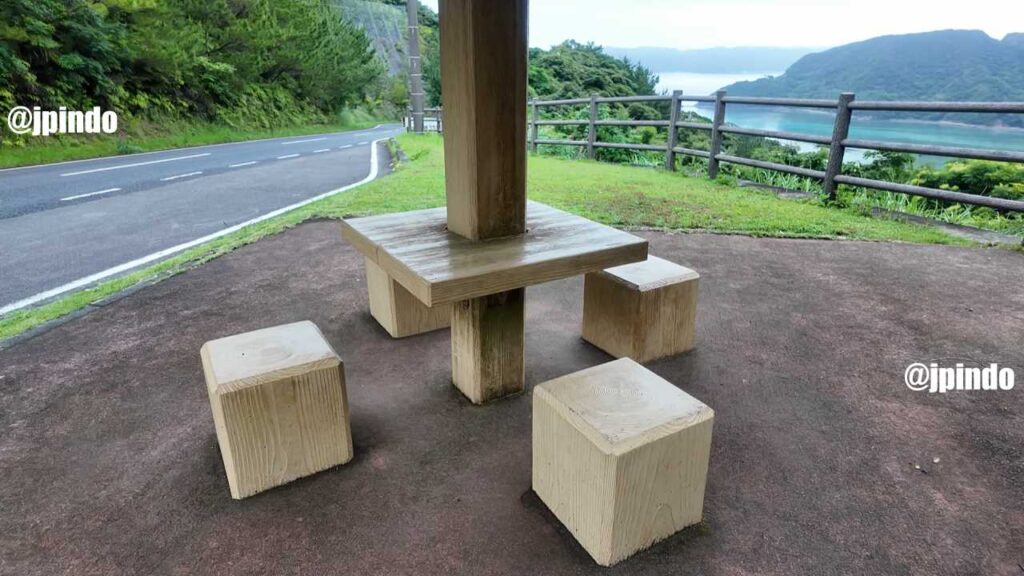 この丘には東屋が設置されていて、椅子テーブルもあります。嘉鉄ブルーの美しいエメラルドグリーンの海を見ながら軽食やコーヒーを飲んでゆっくりと過ごすのもおすすめです。