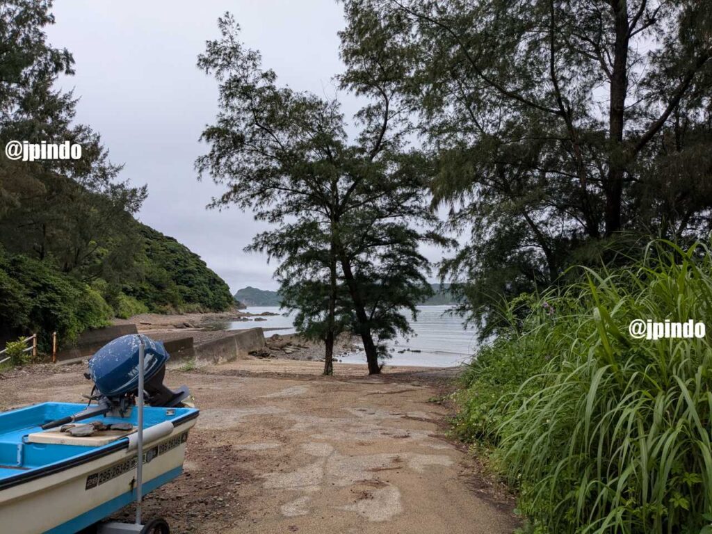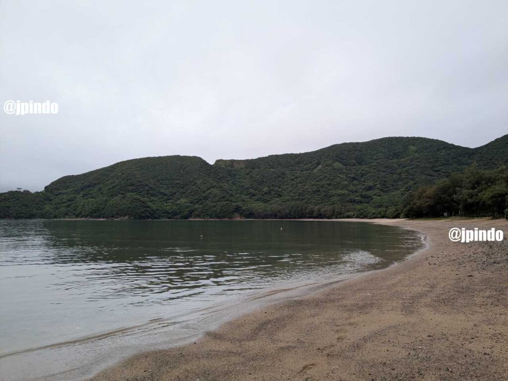 曇り空でもマネン崎展望台から見た嘉鉄ビーチは美しい青色でした。下の方から見ると、曇り空ということもありそこそこ青さが見えるという具合です。