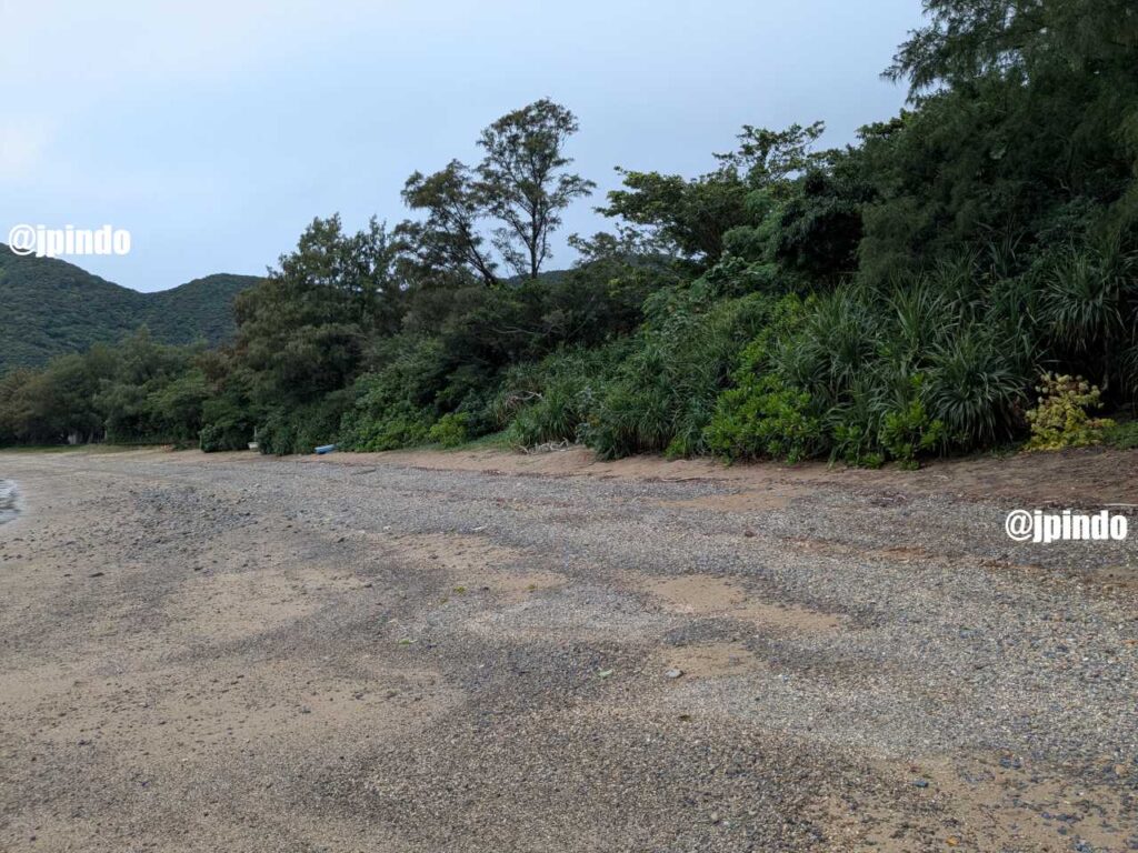 ピーチは白砂で、所々に砂利石が見えています。靴を履いていれば歩きやすいですが、素足だと足元が痛いです。