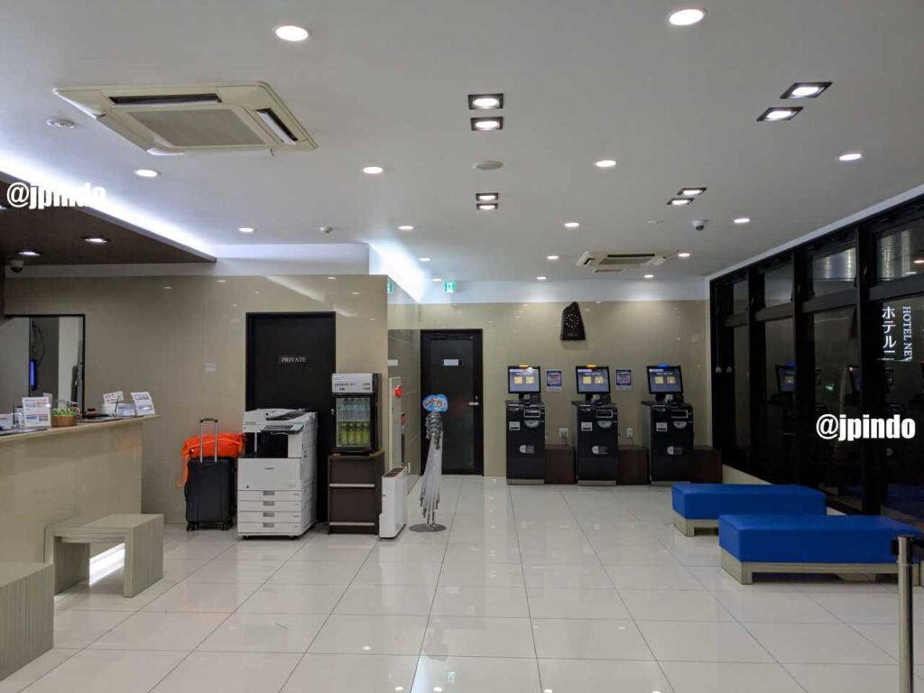 傘やドリンク・コピー機もあります。奥に見えるのは自動チェックイン・チェックアウト機でしょうか?