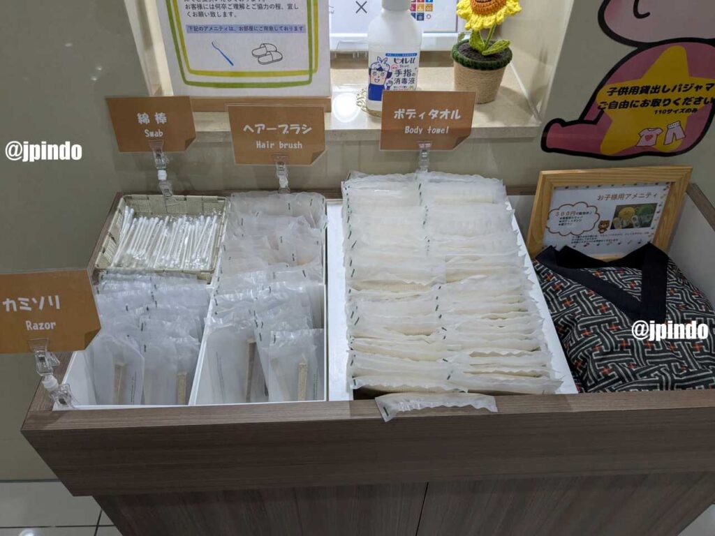 部屋に向かう前に、必要なアメニティが1階に設置されていますので、必要な分だけ部屋に持って行きます。