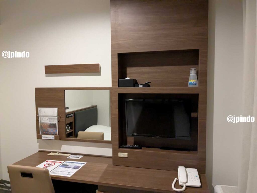テレビの上に、ティッシュやメモ・消臭剤などは設置されています。