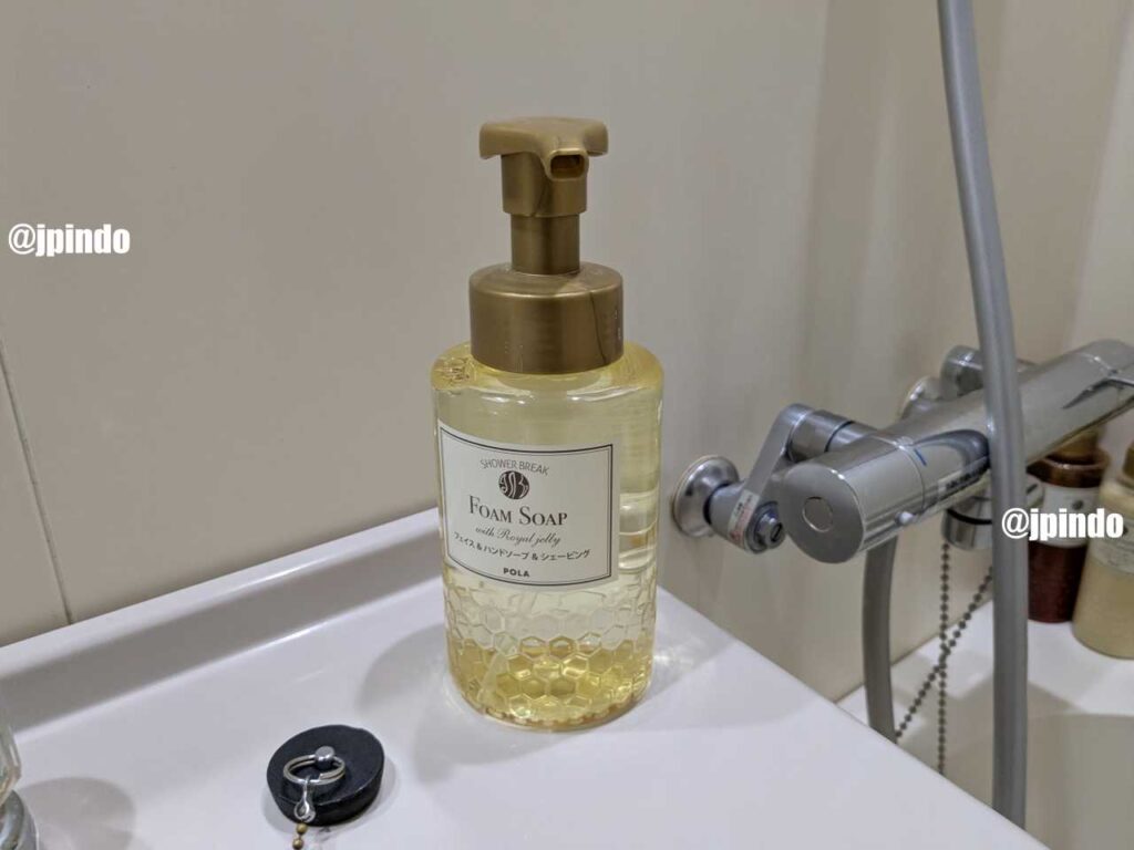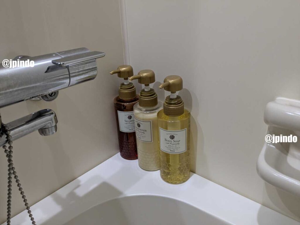 シャンプー・コンディショナー・ボディーソープは、ビジネスホテルでよく見かける「Pola」のものでした。