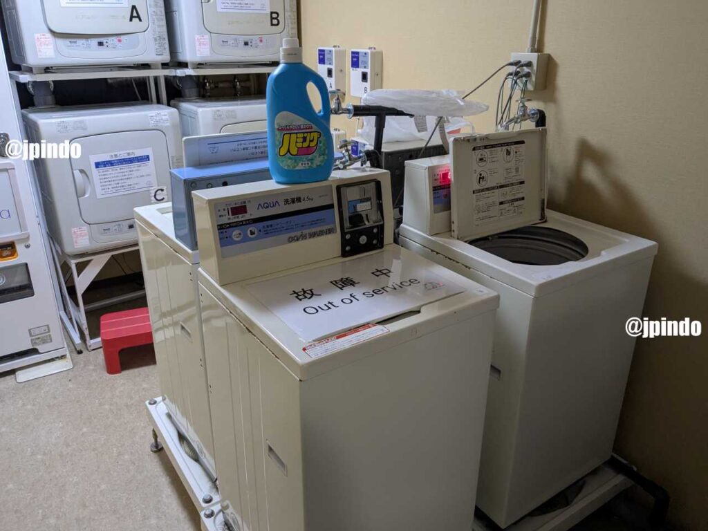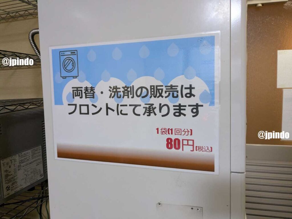 洗濯する場合には、フロントで洗剤も販売しています(一袋一回分80円)。