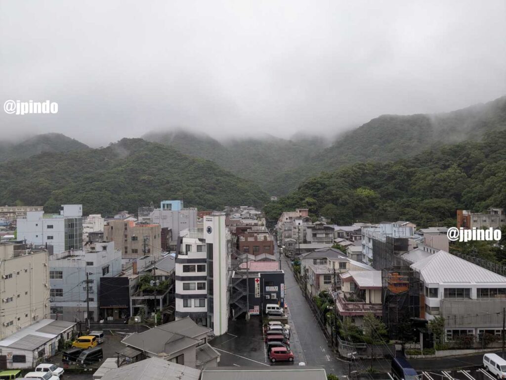 それでは朝になると、部屋からの景色はこのように素晴らしい奄美の山と名瀬の街の景色が楽しめます。