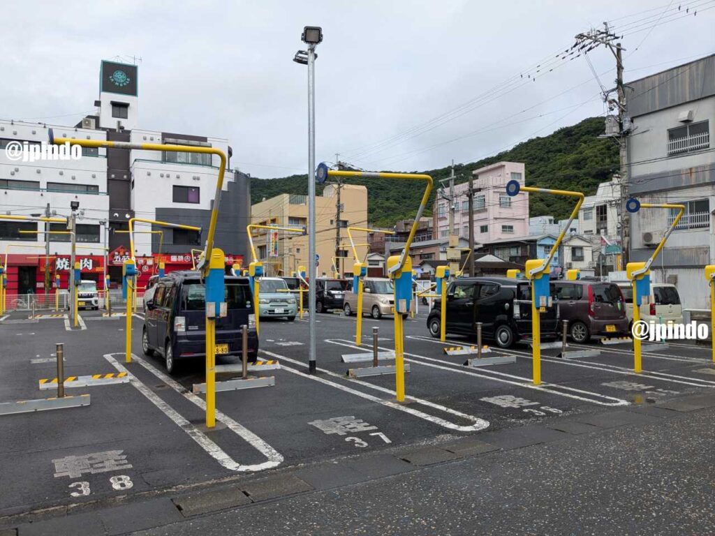 「居酒屋誇羅司屋」の隣には、バーが上から降りてくる珍しいスタイルのコインパーキングがあります。